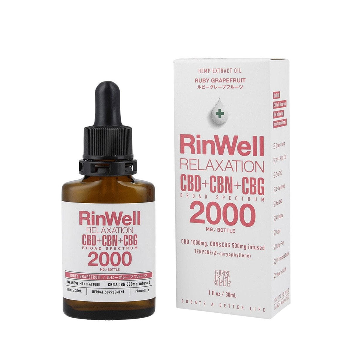 RinWell CBD+CBN+CBGオイル 2000mg ルビーグレープフルーツ 30ml