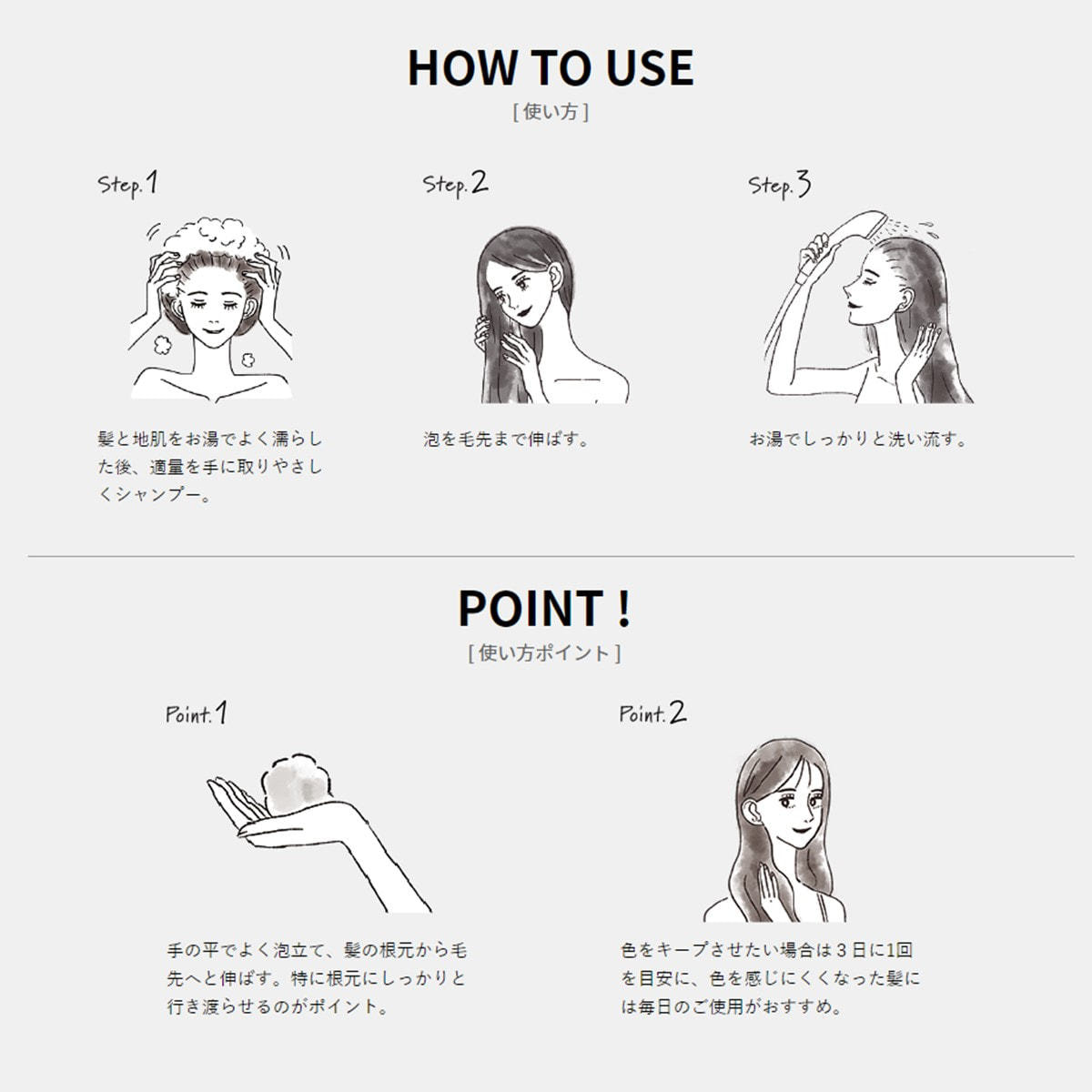 シャンプーには、カラーシャンプーの魅力を際立たせるパール処方を採用。