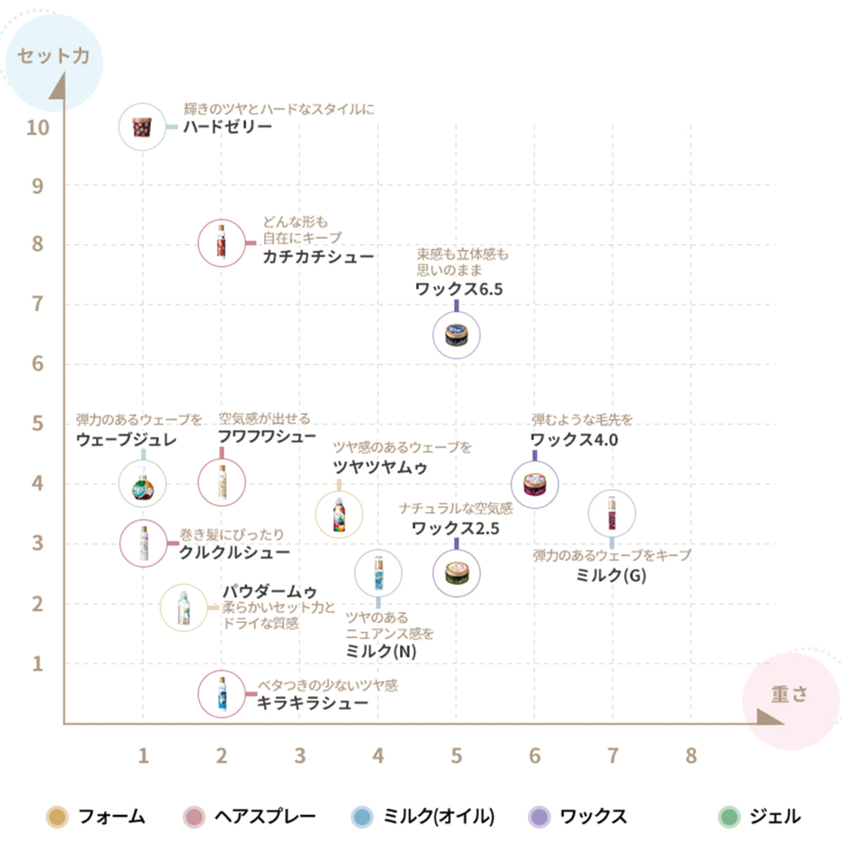 輝きのツヤとハードなセット力で挑戦的なスタイルをロングキープします。