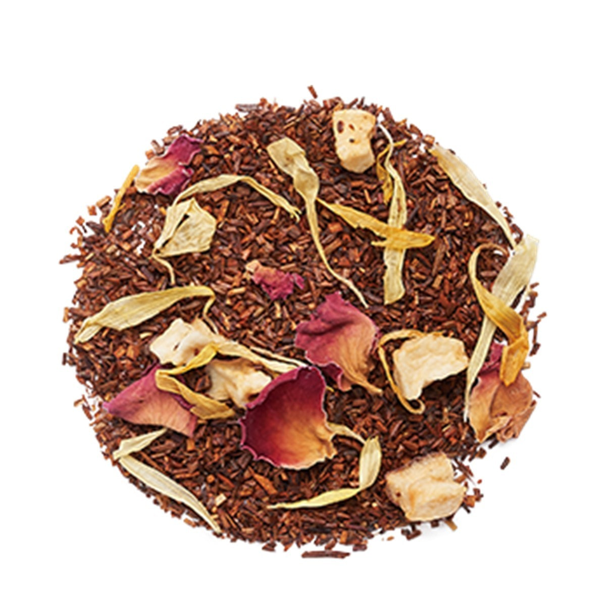 ルイボス【南アフリカ共和国産】、有機ドライアップル、ローズレッド、有機マリーゴールド、香料