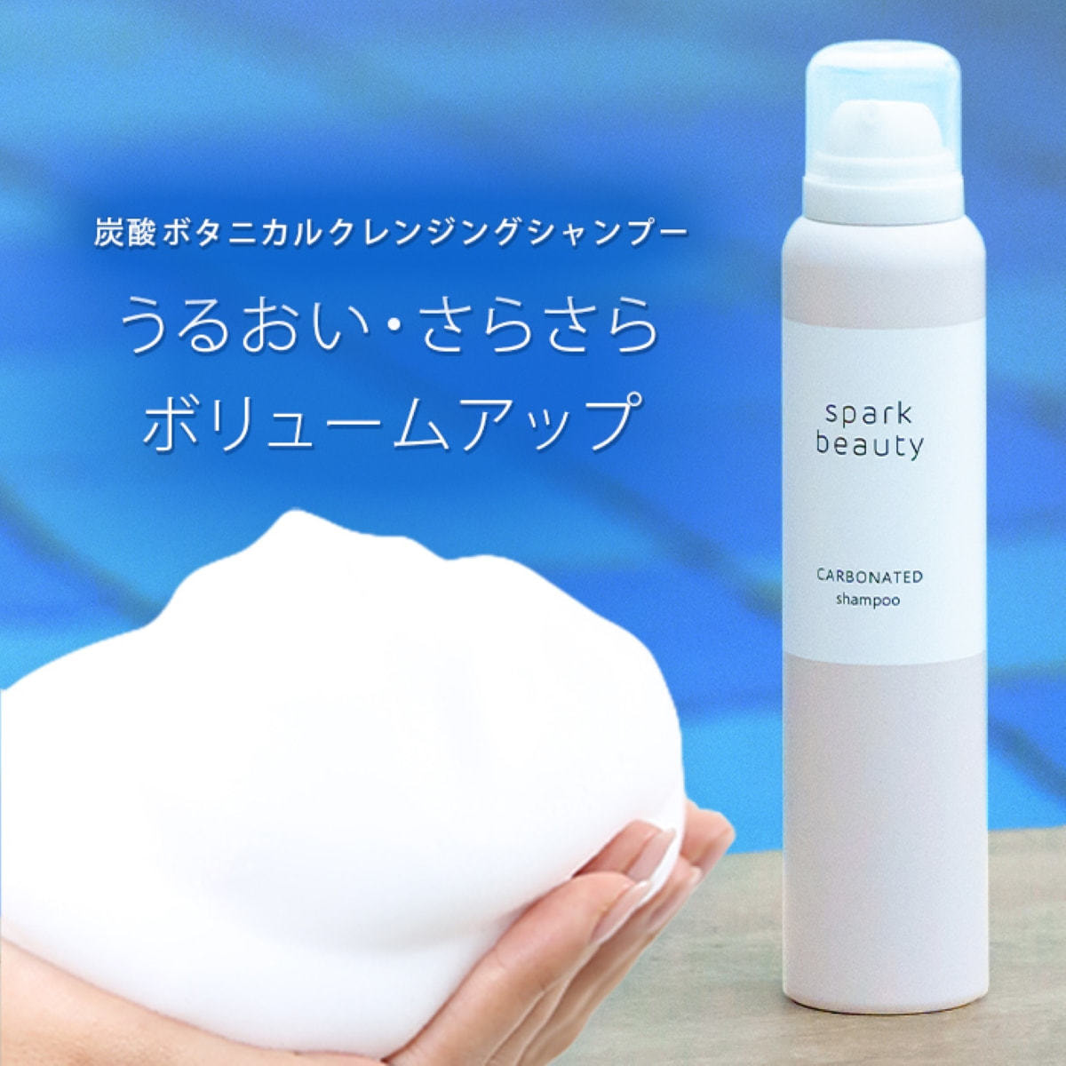 『sparkbeauty 炭酸ボタニカルクレンジングシャンプー』は炭酸泉の約6倍以上の6600mmpの高濃度炭酸を配合。